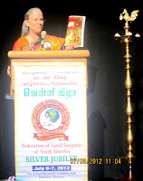 The Ponnivala team was in Baltimore MD for the 2012 FeTNA Silver Jubilee Convention. Tamils from all over North America converged on the spectacular Joseph Meyerhoff Symphony Hall from July 6-8 for a weekend of music, food, networking, and cultural exchange. At the welcome dinner on Thursday evening, Dr. Brenda Beck was asked (unexpectedly!)